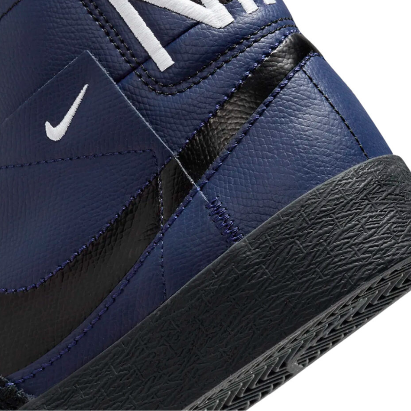 Lúcete con estos tenis NIKE SB ZOOM BLAZER MID que presentan una mezcla de materiales duraderos y listos para patinar comparte la parte superior, con la mayor parte del antepié en un tono oscuro, mientras que el área desde la mitad del pie hasta el talón está cubierta de azul oscuro. Las marcas en la lengüeta, las paredes laterales y la columna también participan en la mezcla experimental, ampliando la afinidad de Nike SB por rebelarse contra la norma.